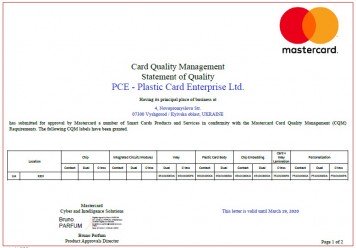 Щорічний аудит системи менеджменту якості MasterCard вкотре підтвердив високий статус "Підприємства "Пластик Карта" в сфері якості її продукції.